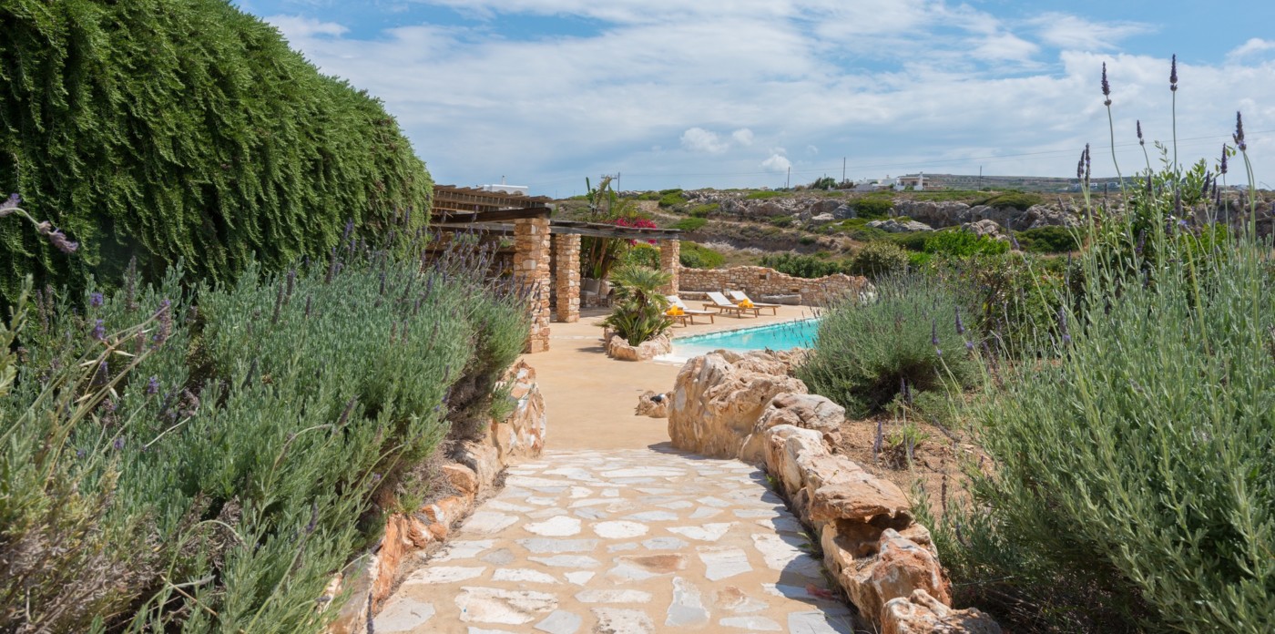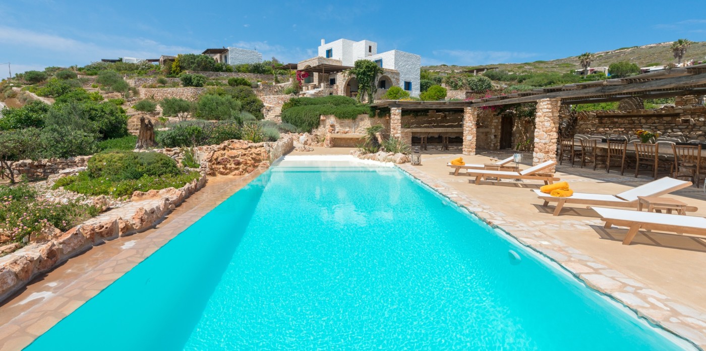 After a day by the private pool or on the sandy beach of Marchelo, in a walking distance of only 2’, sit down at the outdoor diving area and enjoy a good glass of wine of your private vineyard under the Mediterranean sky while contemplating amazing sunsets over the crystal Mediterranean sea.