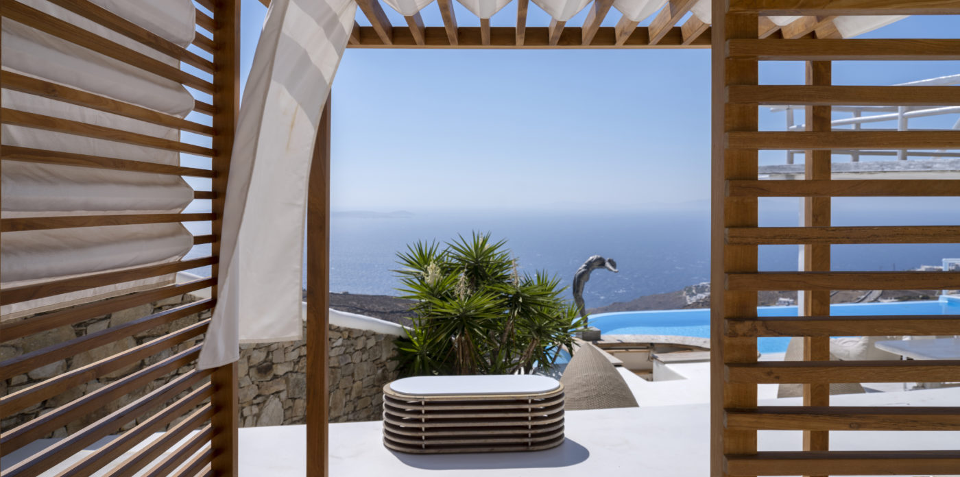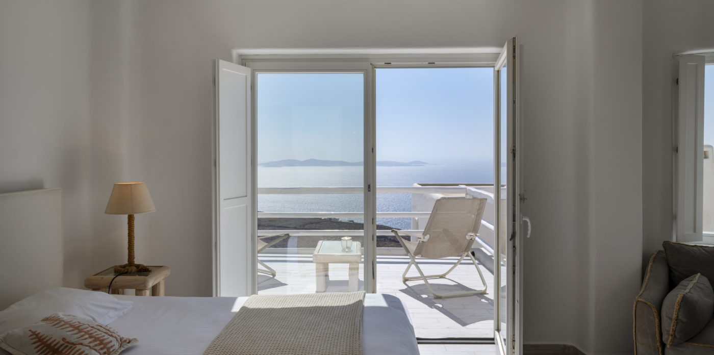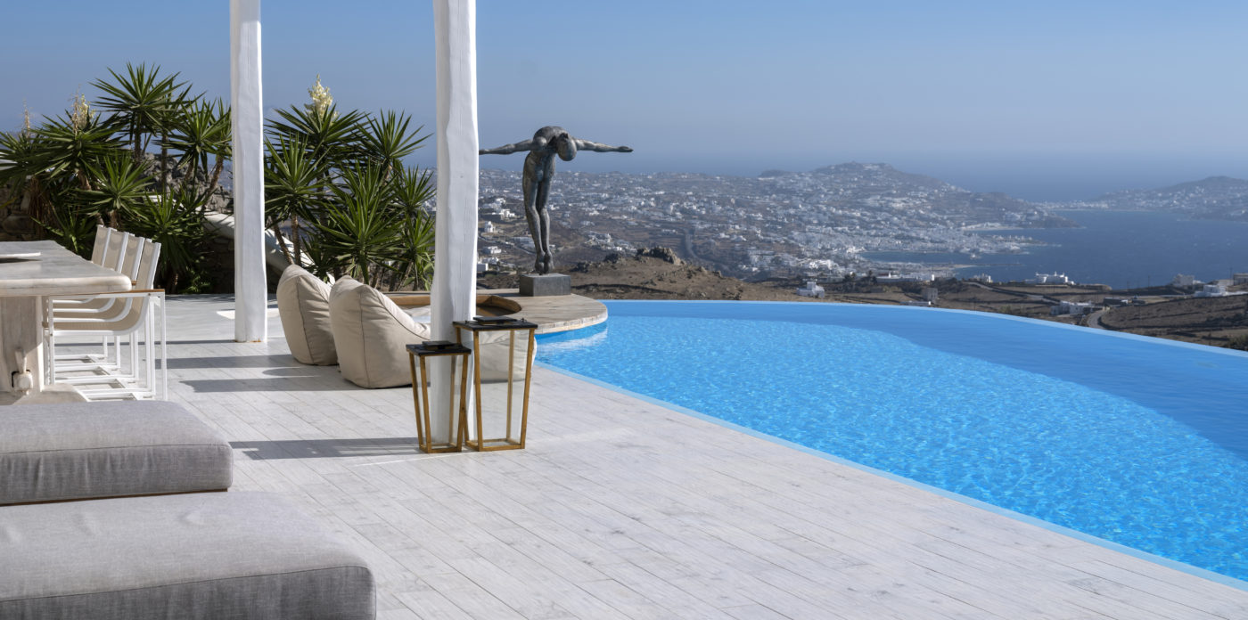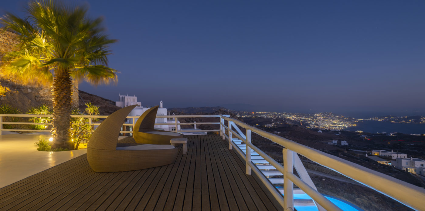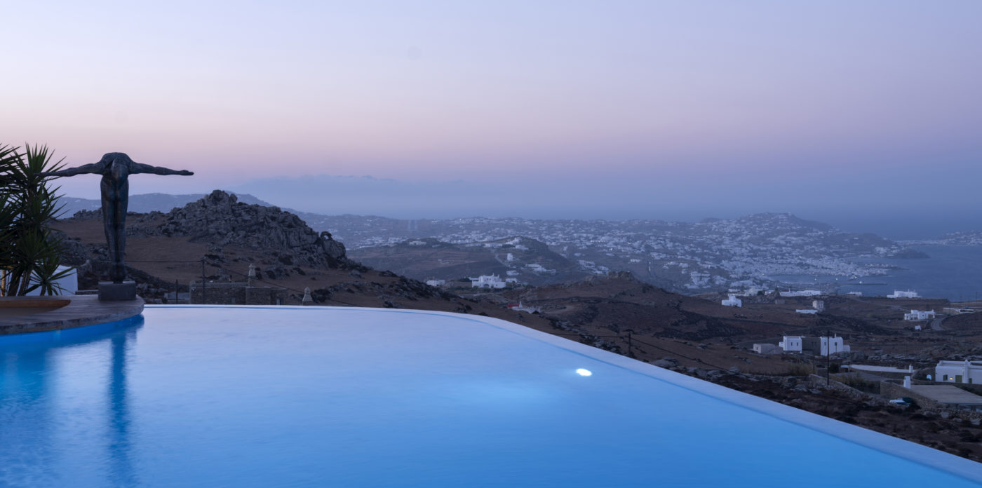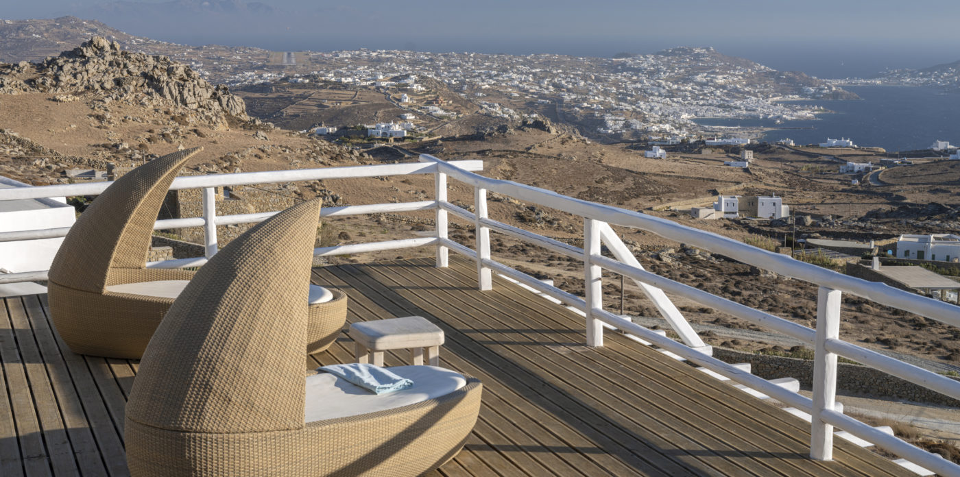Superbly located in the highest peak of the island, yet sheltered from the meltemi winds, Symphony of Colours offers unparalleled views of Mykonos.