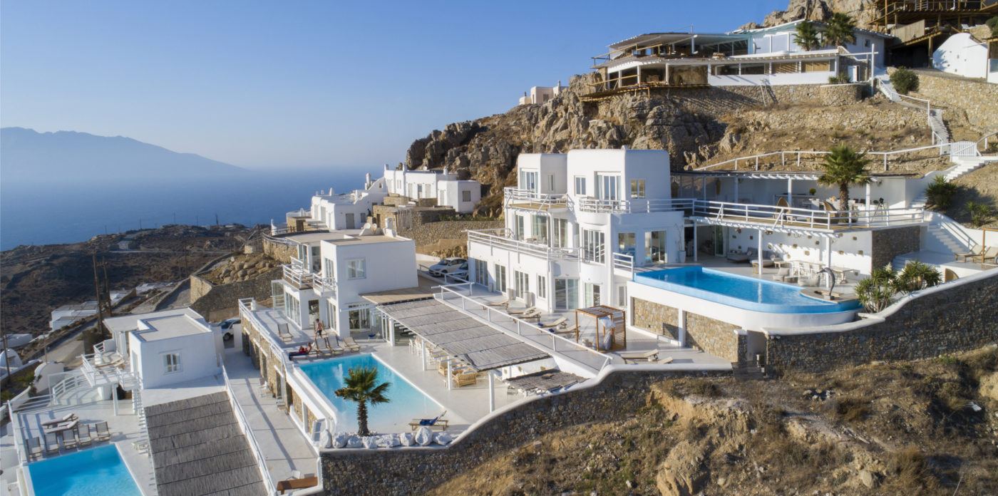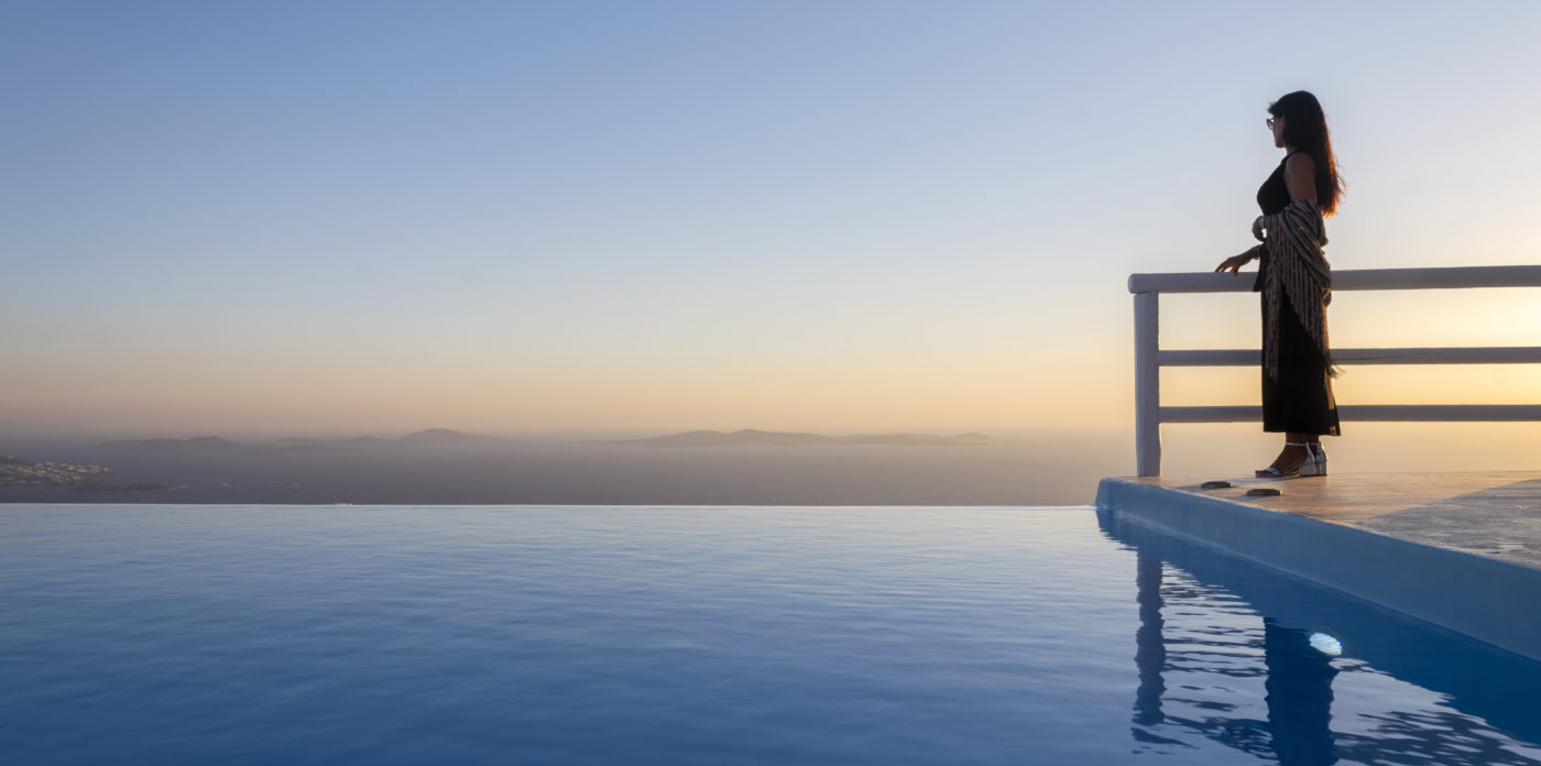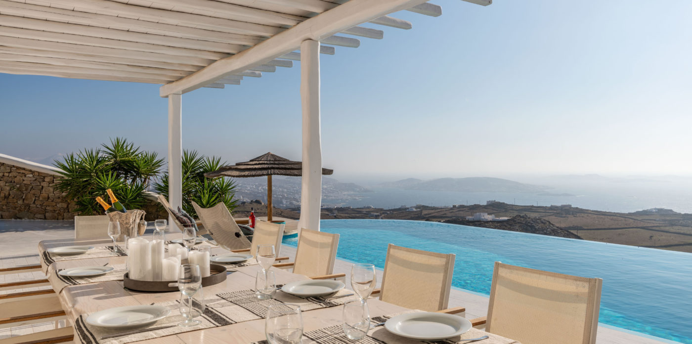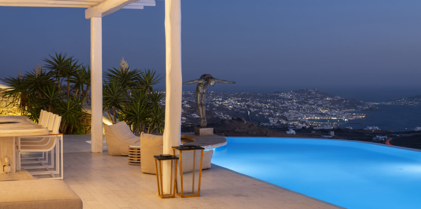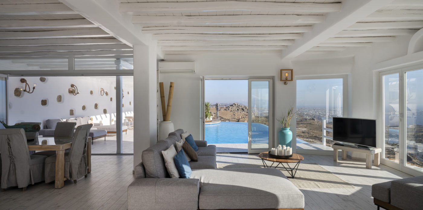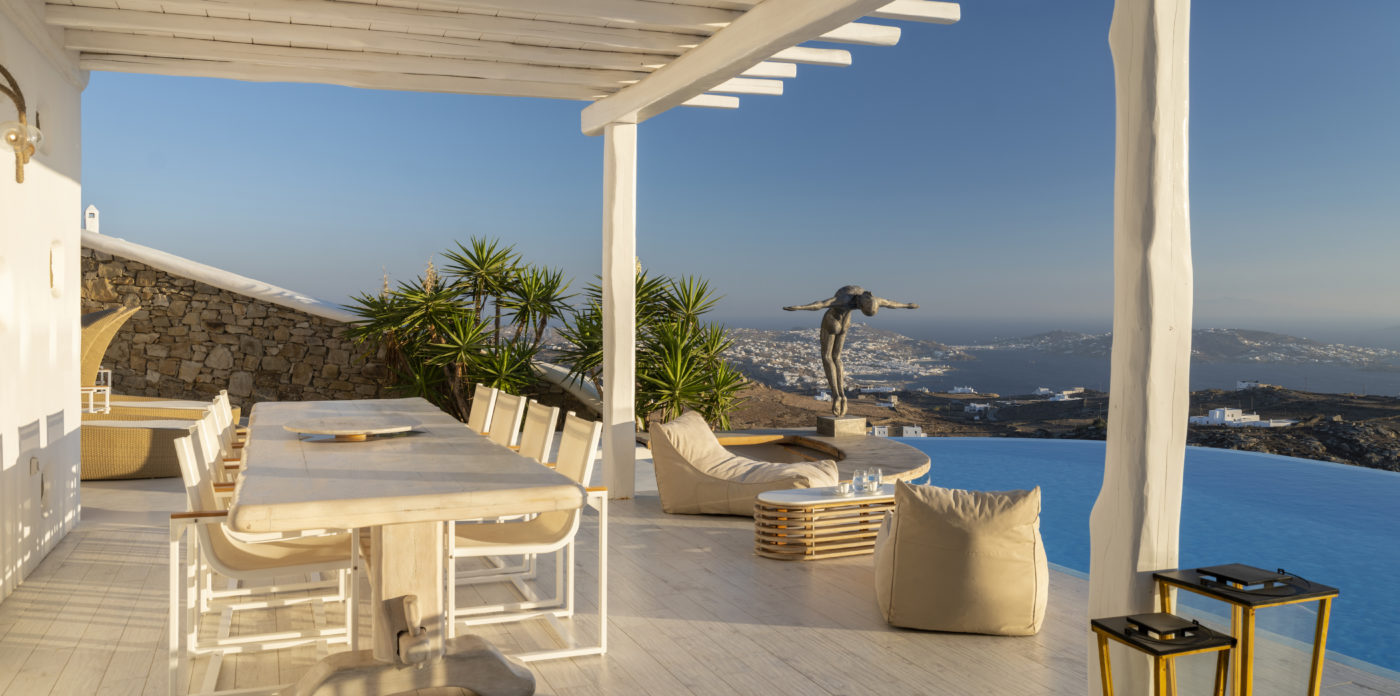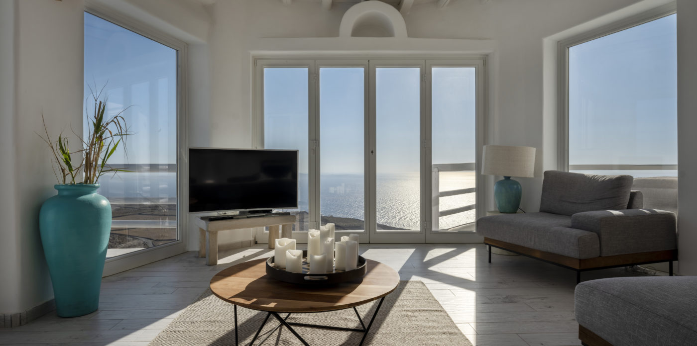 Superbly located in the highest peak of the island, yet sheltered from the meltemi winds, Symphony of Colours offers unparalleled views of Mykonos.
