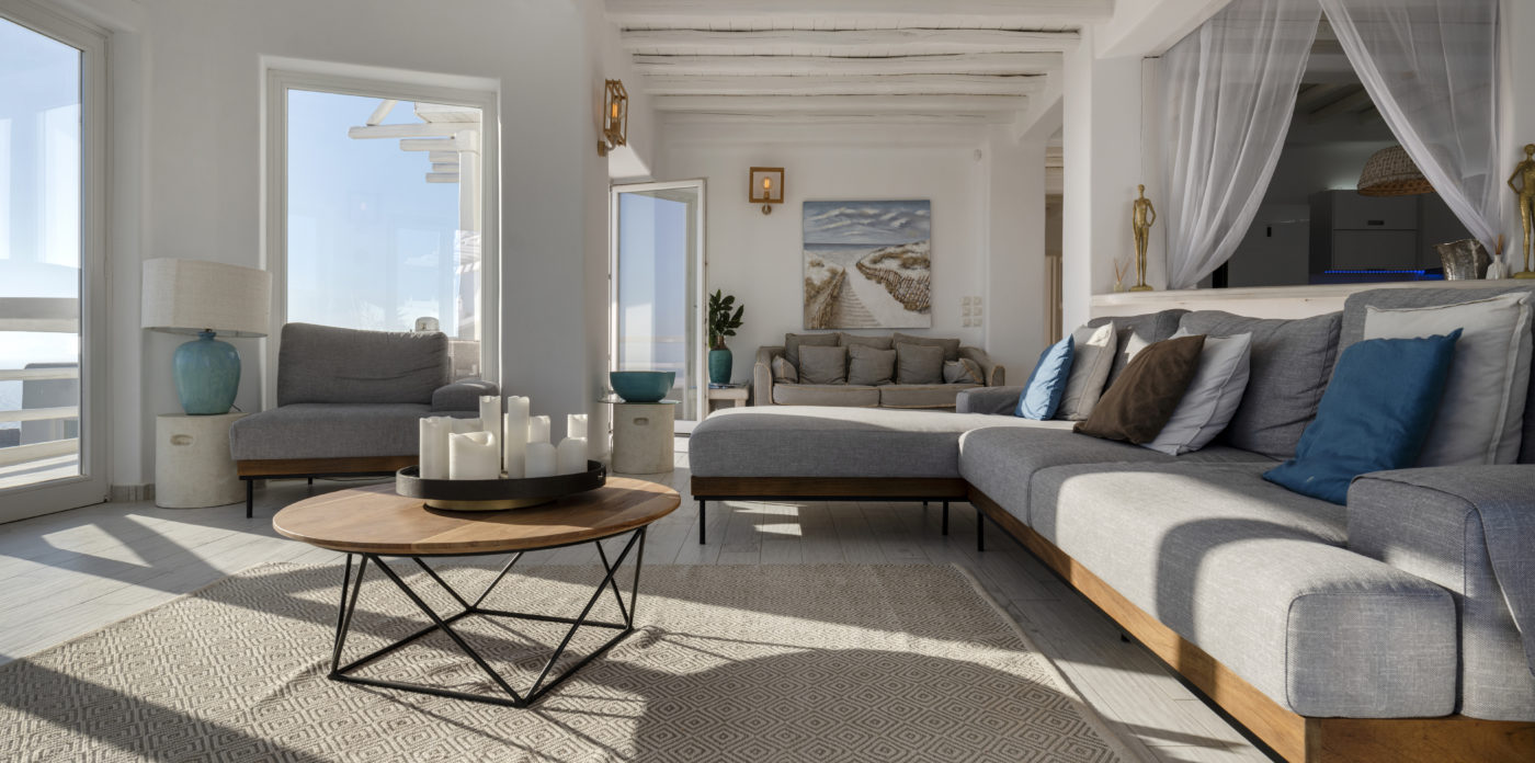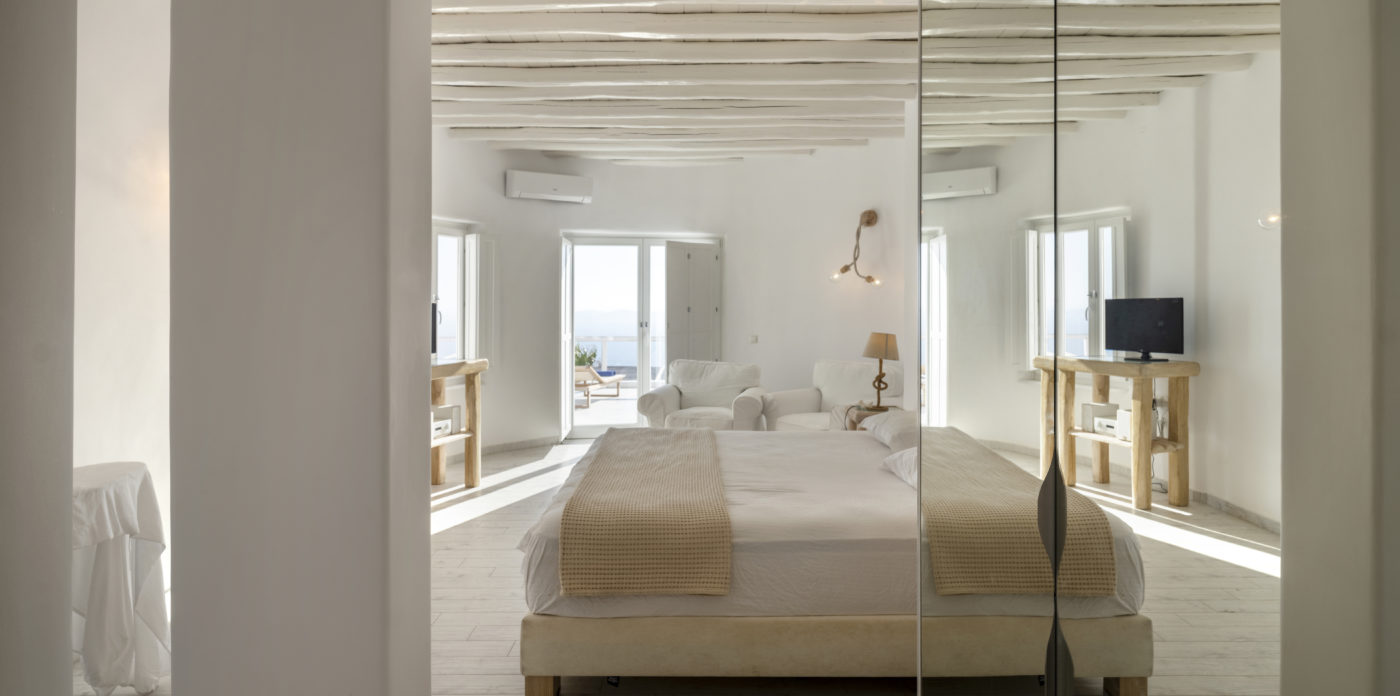 This “Heaven on earth” nine suites mansion with a private infinity pool is for the ones who wish a secluded destination which promises moments of serenity and tranquility. Spend the day lying on your king size bed and enjoy the exclusive views of the Aegean Blue or flip through the pages of your favourite book on your private balconies with sun lounges and chaises longues.