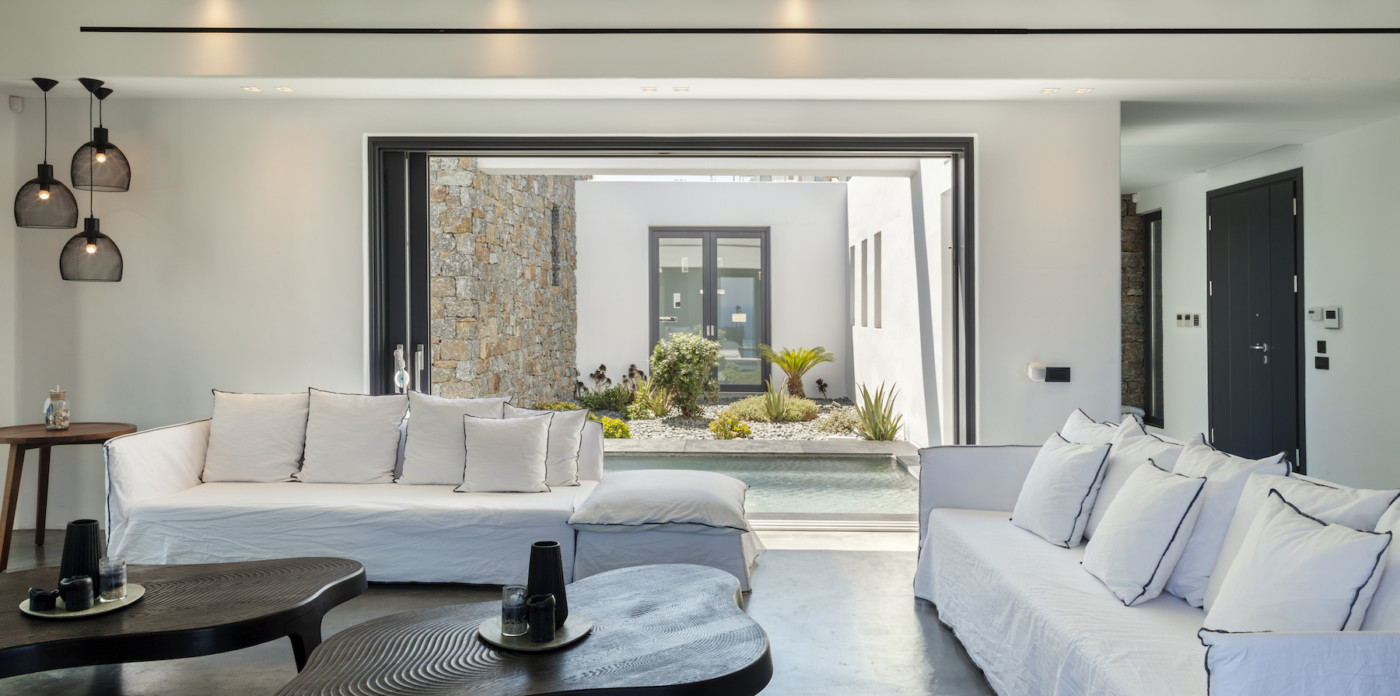 Magnificent’s interiors are finished in a neutral palette of white, grey and stone, creating a soothing atmosphere that lets the vibrant blues of the surrounding water be the star. In spite of the toned-down color scheme Magnificent still feels warm and inviting. There is an additional newly built guesthouse near the main villa.