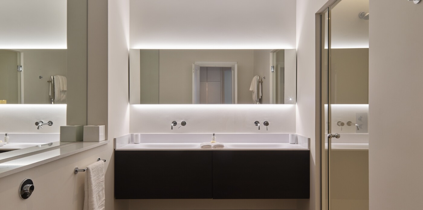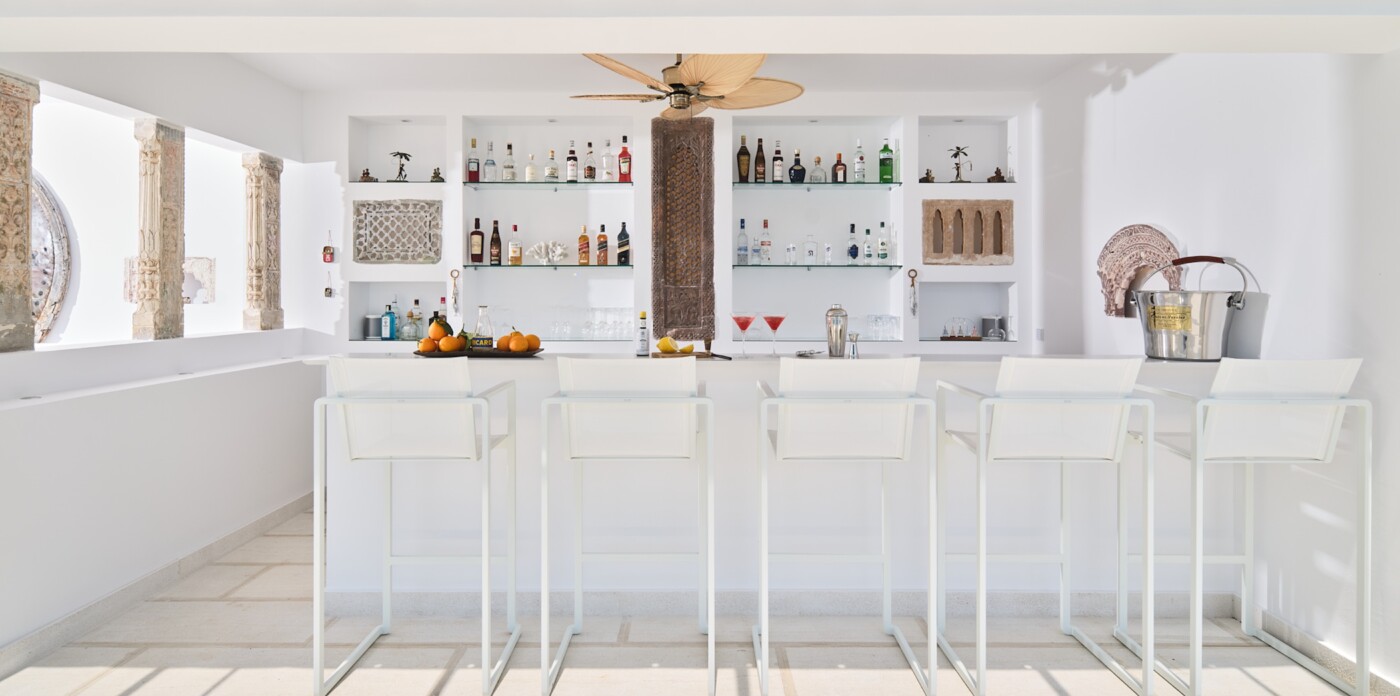 On the lower ground floor there are two bedroom suites overlooking the pool, plus indulgent leisure spaces including a cinema, library, gym and an indoor bar with TV snug. Lastly the independent, air-conditioned guest house offers three additional ensuite bedrooms with dressing areas, a spacious open-plan living/dining room, a fully equipped kitchen, and a large south-facing terrace with sweeping sea views.
