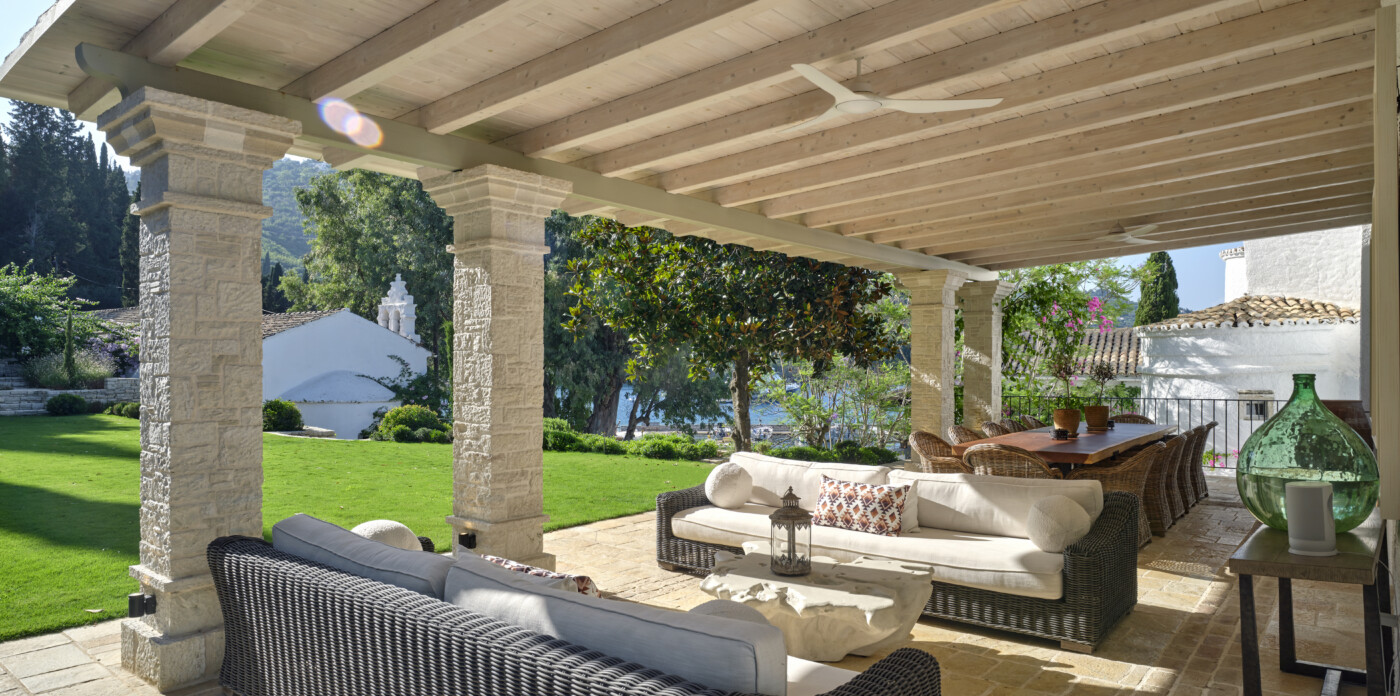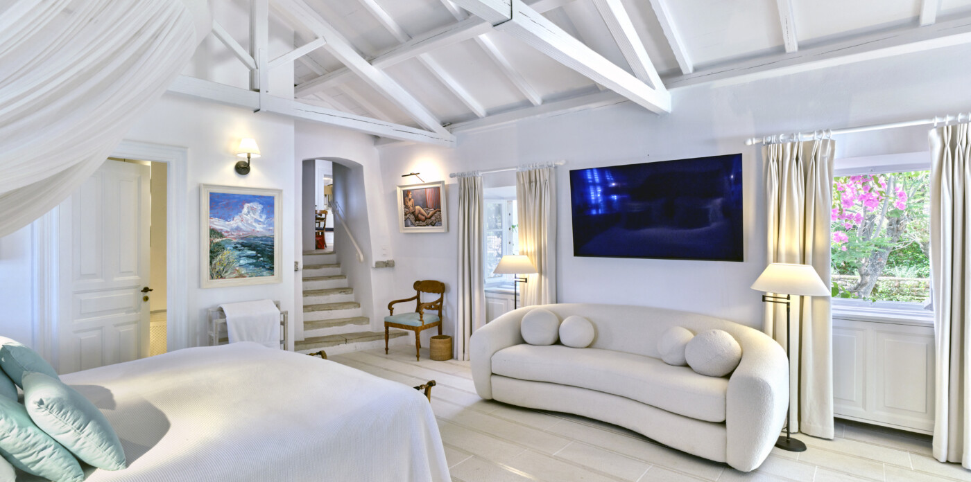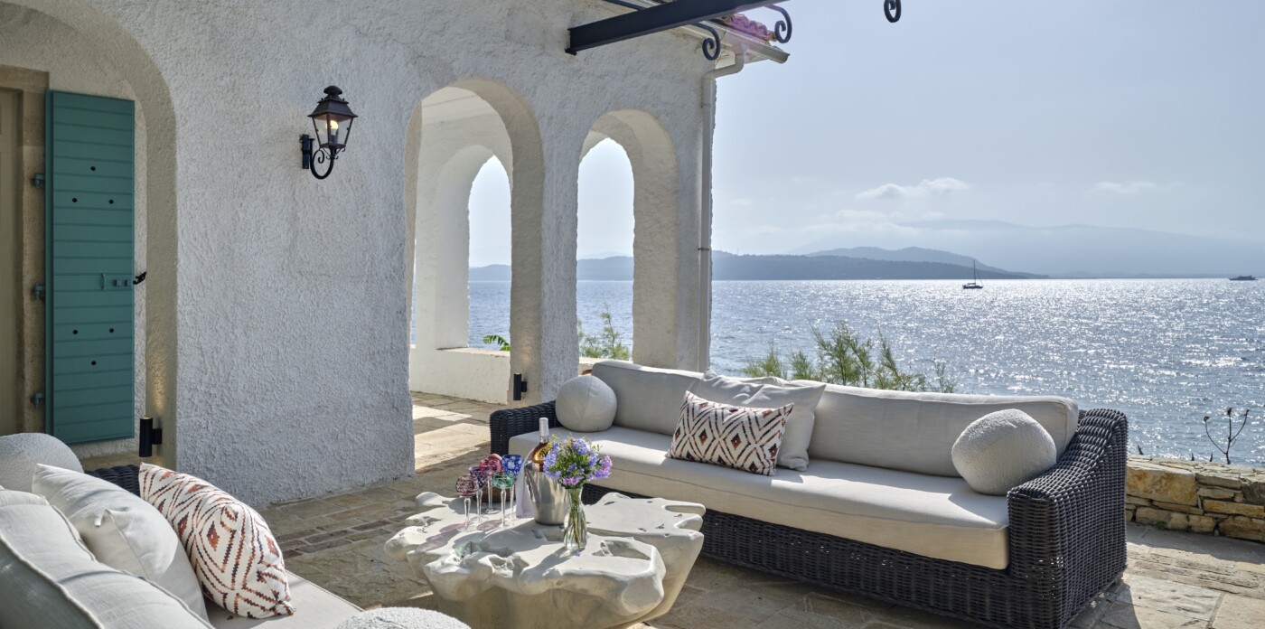 Today, this gem of an estate resonates with the heart and creative energy of its current owners. They have breathed new life into the original building, transforming it into a haven that feels plucked from the pages of a novel. Complete with a marina and positioned within proximity to the vibrant Kassiopi scene, the property’s architecture and décor seamlessly blend Venetian, Corfiot, and British influences.