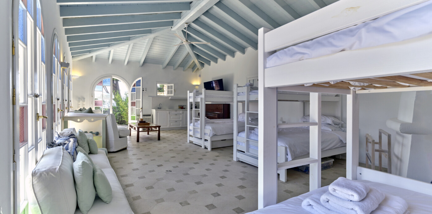 A separate apartment at sea level, complete with three bedrooms (two en suite) and a fully equipped kitchen, provides ideal accommodations for staff or teenagers, offering privacy and independence.