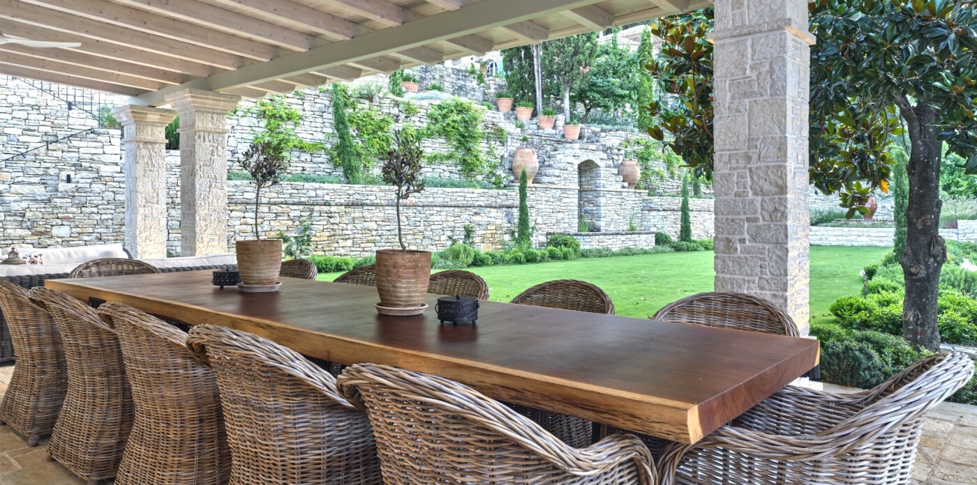 The villa is surrounded by mature Mediterranean gardens, where the intoxicating scent of the rare and wild maquis mingles with the sea breeze along the coastal edge.