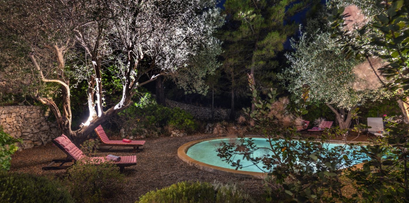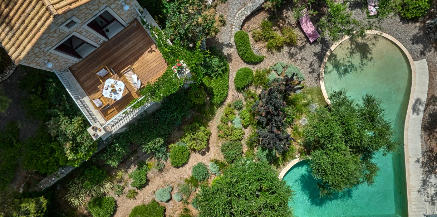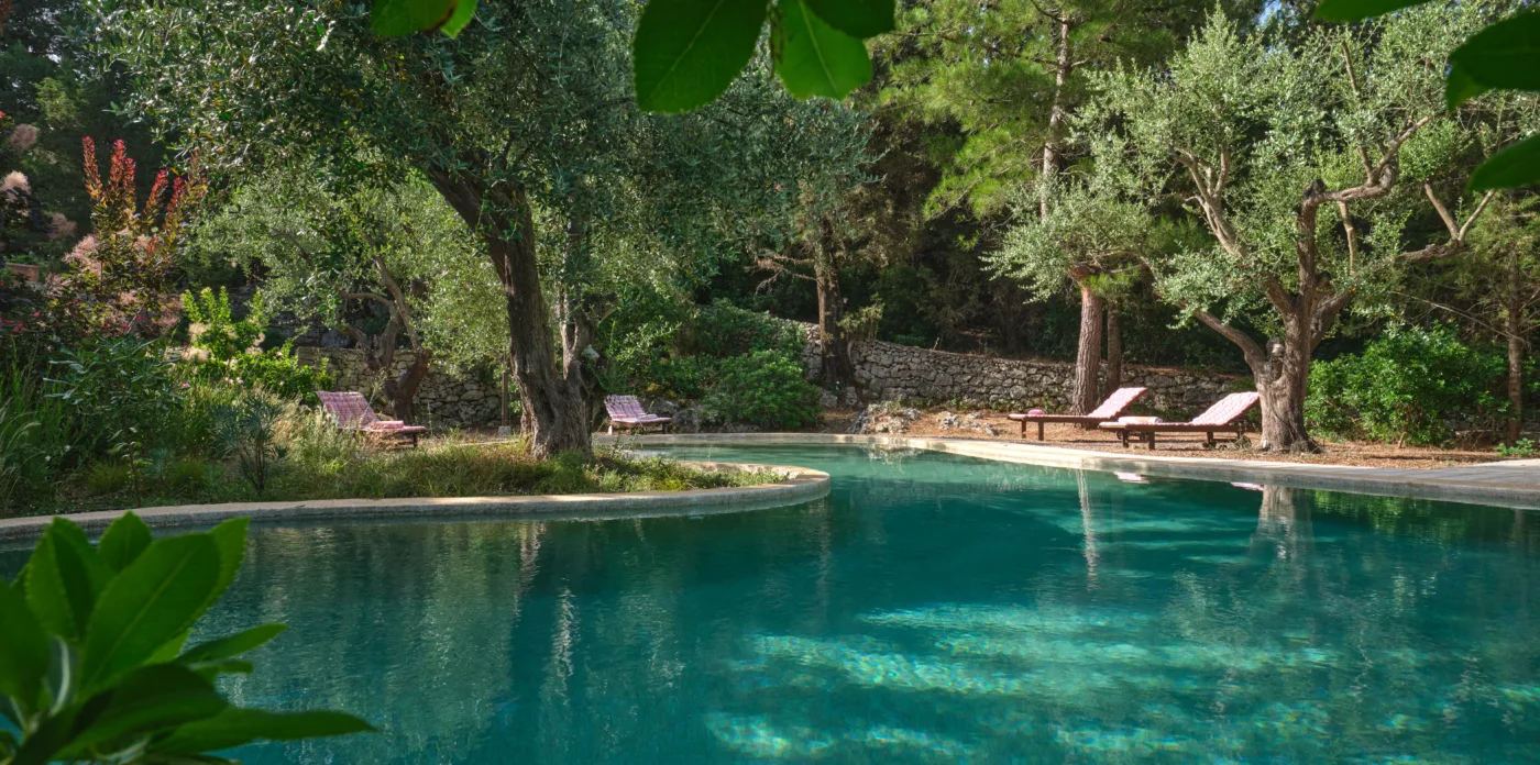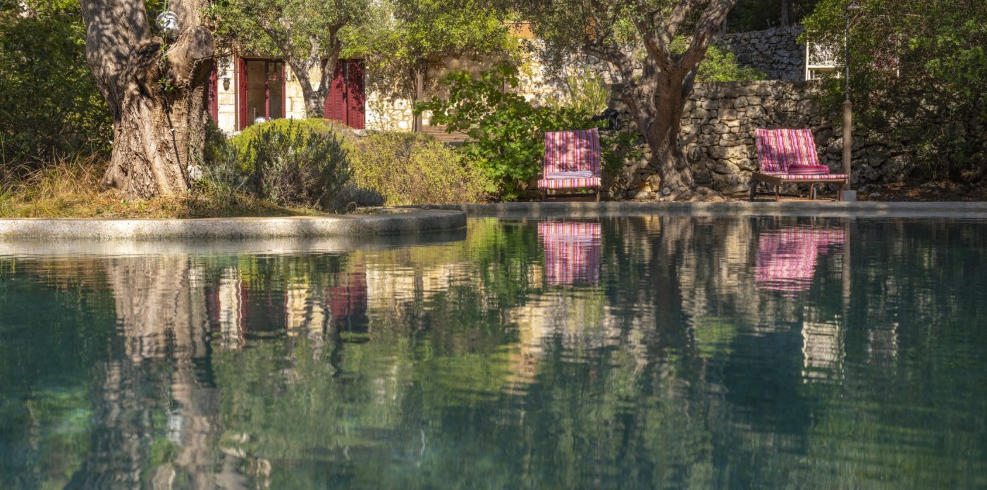 The retro/romantic colourful style of the property brings a joyful and deeply mindful wellness experience with dramatic sea views while the one of kind lake-feeling architecture of the pool, creates a herbal paradise scenery.