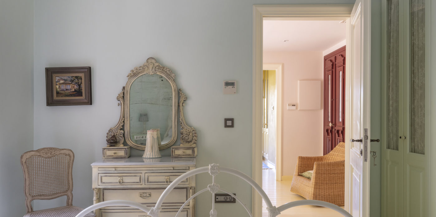 The interiors feature a warm and cozy atmosphere with the fireplace, carpets and quilts. A unique living room full of vintage pieces and colourful, carefully selected antiques, including Roche Bobois furniture, promises unique moments of relaxation with friends and family.