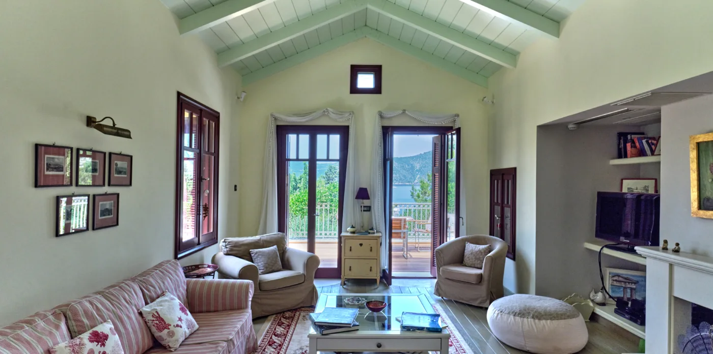 Villa Viola enjoys a secluded beachfront location inside seven acres of private gardens, surrounded by untouched pine forest. At the same time the property boasts a proximity to the lovely port of Vathi, the capital of the island, just a five minute drive or delightful 20 minute walk away.